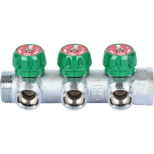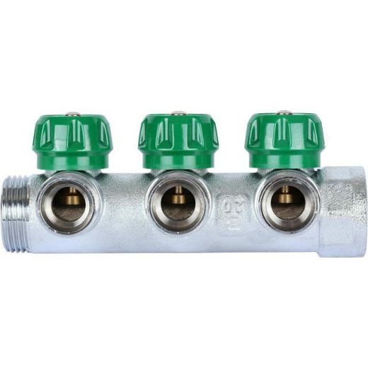 Коллектор регулирующий распределительный 1" с 3 отводами 3/4" ЕК, хромированный STOUT