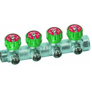 Коллектор регулирующий распределительный 3/4" (ВР-НР) с 4 отводами 1/2" НР, плоское уплотнение FAR