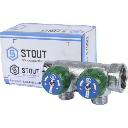 Оцените товар «Коллектор регулирующий распределительный 3/4" с 2 отводами 1/2" STOUT»