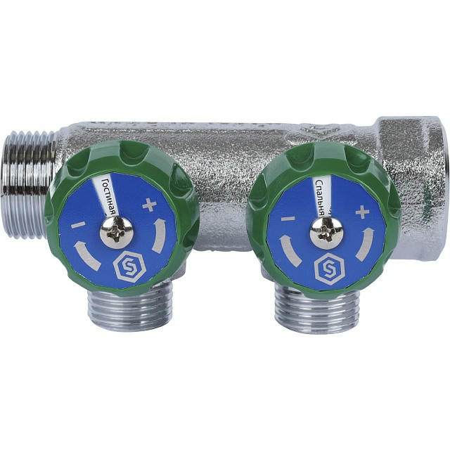 Оцените товар «Коллектор регулирующий распределительный 3/4" с 2 отводами 1/2", плоское уплотнение STOUT»