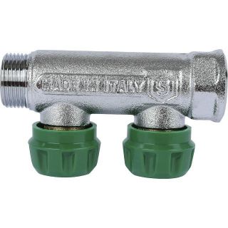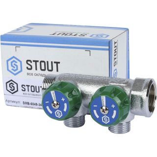 Коллектор регулирующий распределительный 3/4" с 2 отводами 1/2", плоское уплотнение STOUT