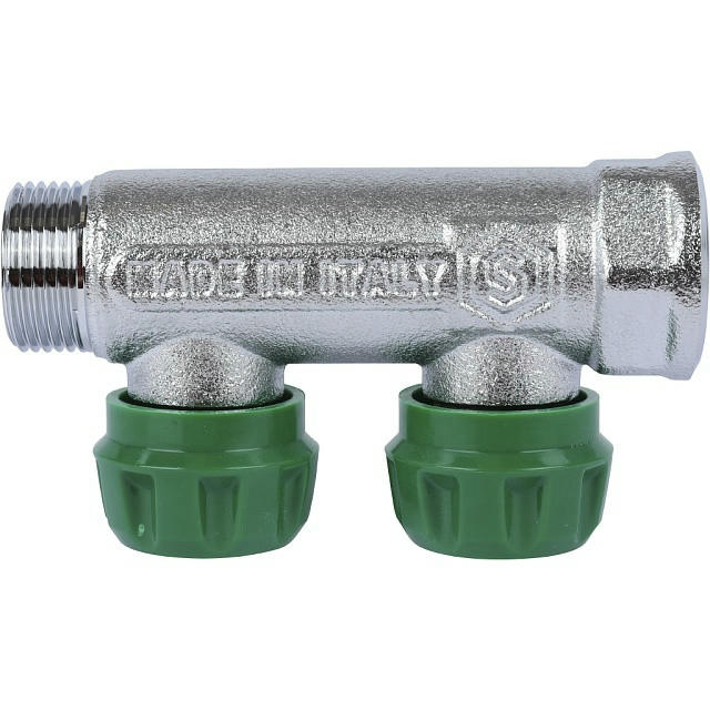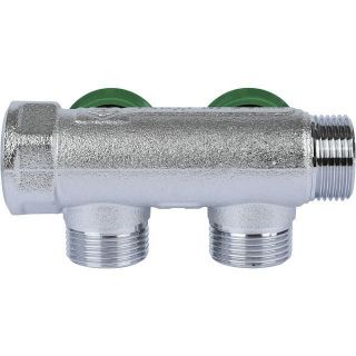 Коллектор регулирующий распределительный 3/4" с 2 отводами 3/4" ЕК, хромированный STOUT