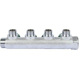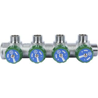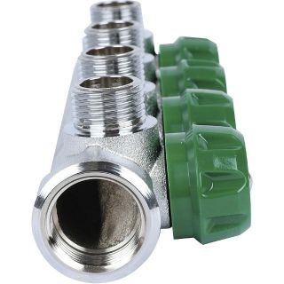 Коллектор регулирующий распределительный 3/4" с 4 отводами 1/2", плоское уплотнение STOUT