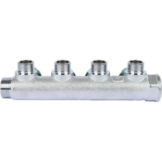 Оцените товар «Коллектор регулирующий распределительный 3/4" с 4 отводами 1/2", плоское уплотнение STOUT»