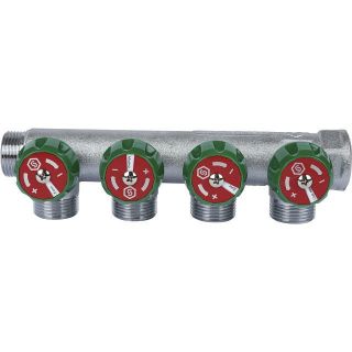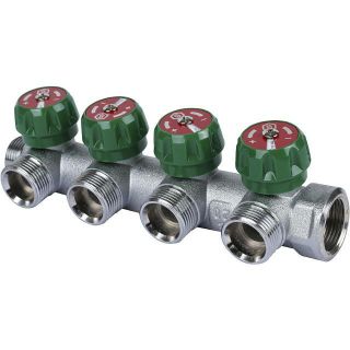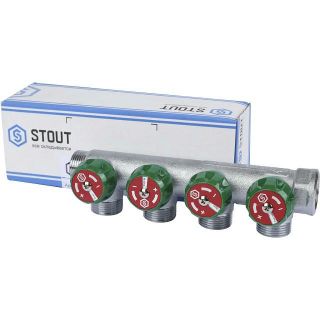 Коллектор регулирующий распределительный 3/4" с 4 отводами 3/4" ЕК, хромированный STOUT