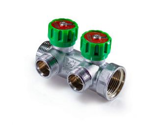 Коллектор регулирующий с вентилями 1" на 2 выхода 3/4" ЕК ZEISSLER