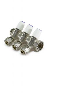 Коллектор регулирующий с вентилями 1" на 3 выхода, никелированный TIM