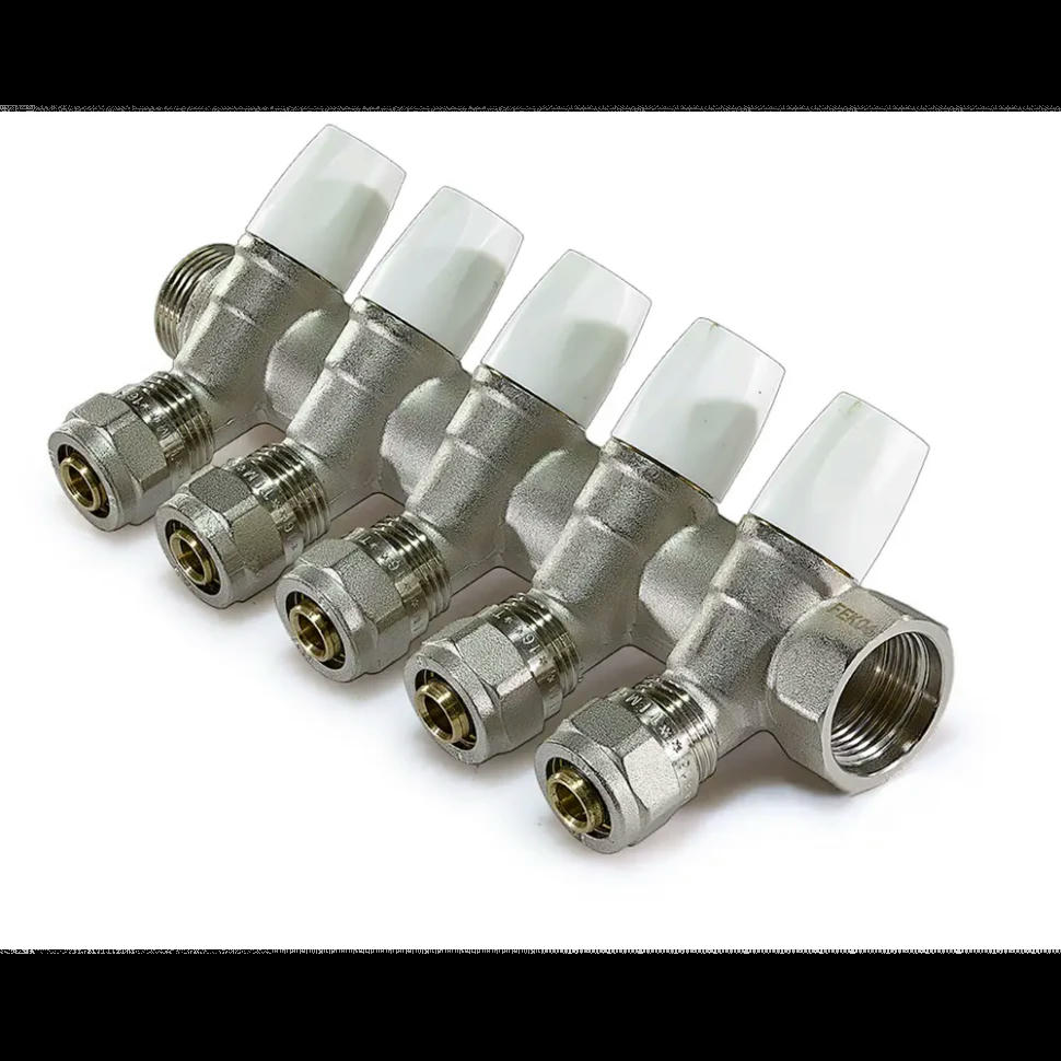 Коллектор регулирующий с вентилями 3/4" на 5 выходов, никелированный TIM