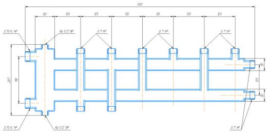 Коллектор с гидроразделителем WKD.R.60.К на 3+1+1 контуров до 60 кВт, дублер компакт Warme