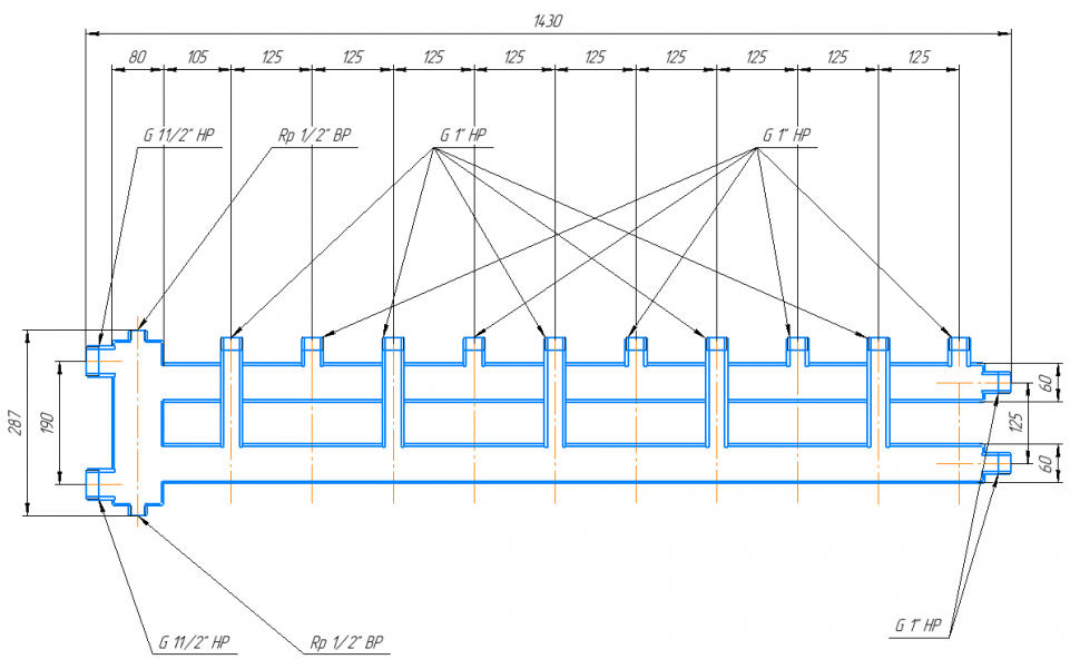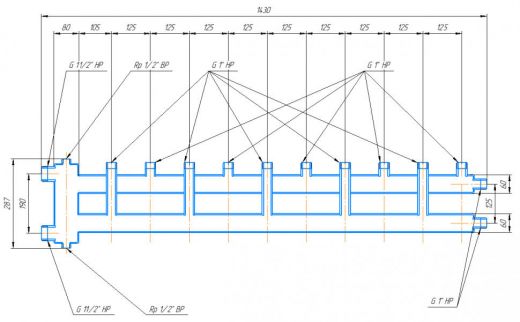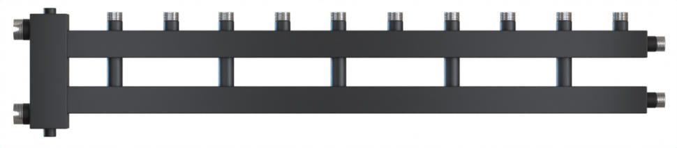Распределительный коллектор отопления Warme WKD.R.85 (Дублер рядный с гидроразделителем и накидными гайками) на 5+1 контур потребителей (до 85 кВт). Для герметичного соединения деталей рекомендуется использовать анаэробный герметик Warme Fix 3. В качестве теплоносителя рекомендуется заливать котловую воду Warme Gydro, либо незамерзающий экологический теплоноситель на основе пропиленгликоля Warme Eco Pro 30. Распределительный коллектор Warme с установленными группами быстрого монтажа Warme Maske обеспечивает разделение и управление контурами потребителей в доме (теплые полы, радиаторное отопление, бойлер, вентиляция). Сокращает время монтажа системы отопления.