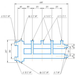 Коллектор с гидроразделителем и гайками WKD.R.85.F на 2+1 контура до 85 кВт Warme