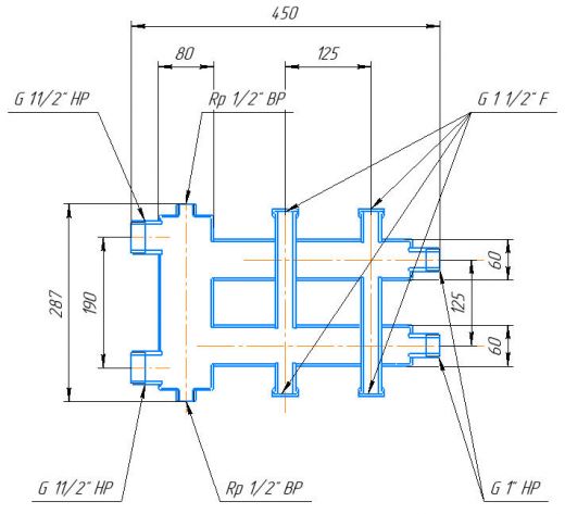 Коллектор с гидроразделителем и гайками WKD.R.85.К.F на 1+1+1 контура до 85 кВт Warme