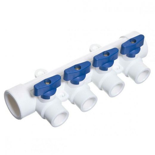 Коллектор с синими кранами 4 выхода 40-20, белый Imperial