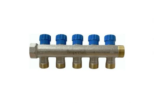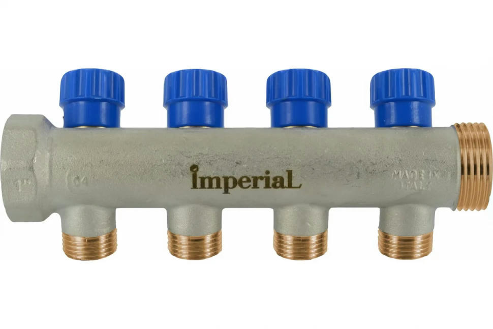 Коллектор с вентильными кранами 3/4-1/2-3 выхода, никелированный Imperial