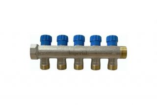 Коллектор с вентильными кранами 3/4-1/2-5 выходов, никелированный Imperial