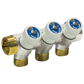 Коллектор с вентилями 3/4" на 3 выхода 1/2", никелированный Comisa