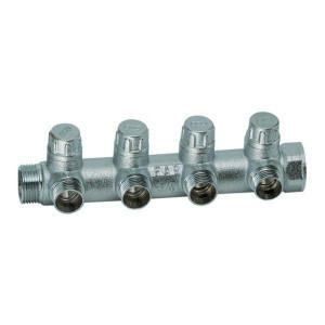 Коллектор запорный 1" ВР-НР c 4 отводами 3/4" EU c вставкой под уплотнение FAR