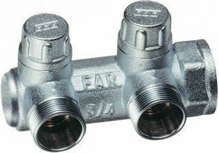 Коллектор запорный 3/4" с 2 отводами М24х19, концевой FAR