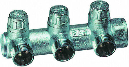 Оцените товар «Коллектор запорный 3/4" с 3 отводами 1/2" НР (межосев. 45 мм) ,концевой FAR»