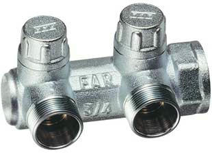 Коллектор запорный концевой 3/4" с 2 отводами 1/2" НР FAR