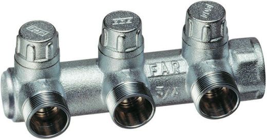 Коллектор запорный концевой 3/4" с 3 отводами М24х19 FAR