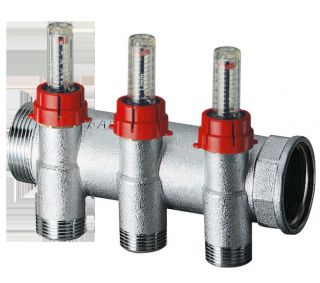 Коллектор запорный с расходомерами 1" ВР-НР 3 отводами М24х19 FAR