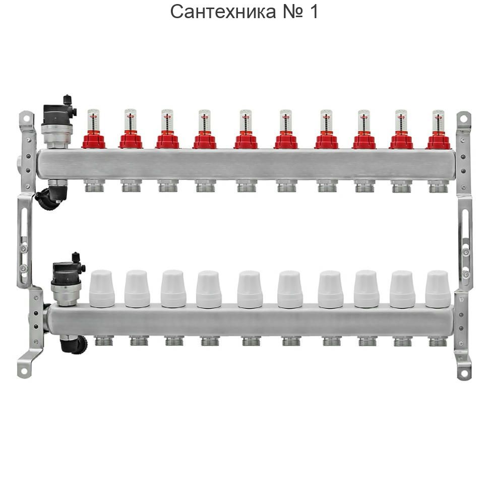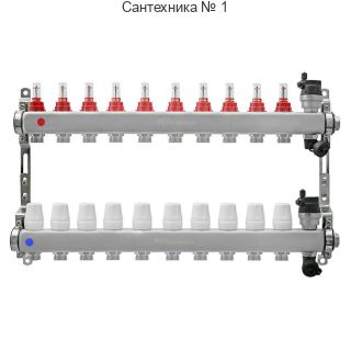 Коллекторная группа 1" 10 выходов без кранов с расходомерами Millennium