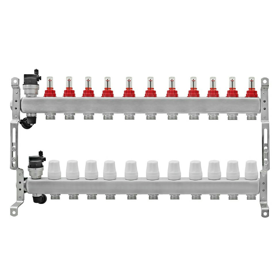 Коллекторная группа Millennium с расходомером для теплого пола - это идеальное решение для создания эффективной и надежной системы отопления в вашем доме или квартире. Она позволяет равномерно распределять теплоноситель по всем контурам теплого пола, обеспечивая равномерный прогрев помещения и экономию энергии.