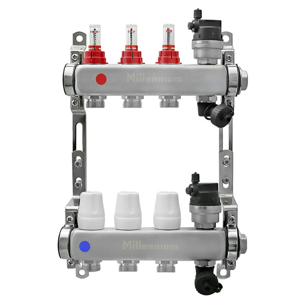 Коллекторная группа Millennium с расходомером для теплого пола - это идеальное решение для создания эффективной и надежной системы отопления в вашем доме или квартире. Она позволяет равномерно распределять теплоноситель по всем контурам теплого пола, обеспечивая равномерный прогрев помещения и экономию энергии.