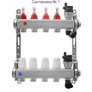 Коллекторная группа 1" 4 выхода без кранов с расходомерами Millennium