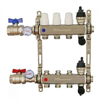 Коллекторная группа 1" 5 выходов с кранами Millennium