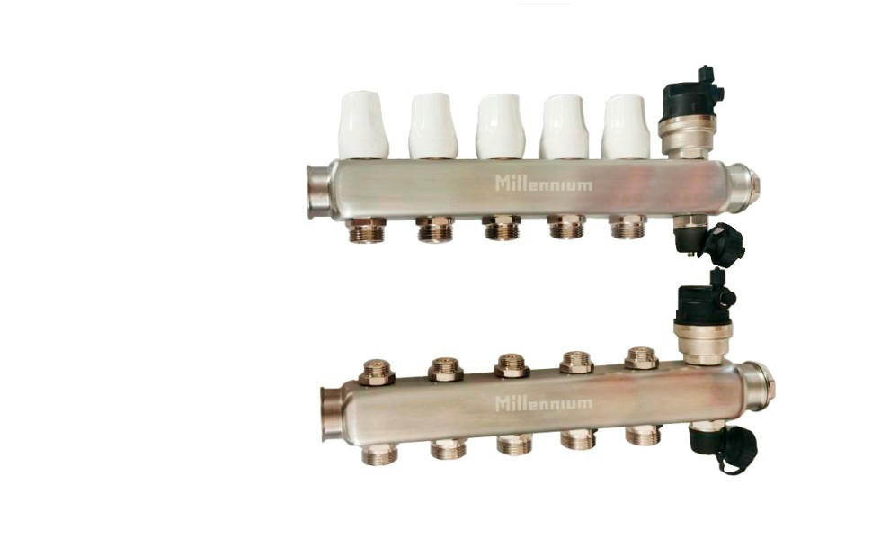 Коллекторная группа Millennium без расходомеров предназначена для распределения и регулировки потоков в системах отопления, охлаждения, вентиляции и водоснабжения. Она обеспечивает равномерное и стабильное распределение теплоносителя или другой рабочей среды по контурам потребителей.