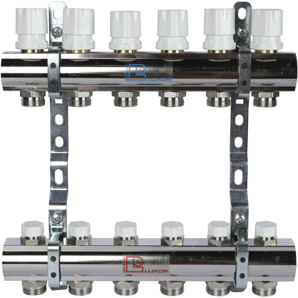 Коллекторы Luxor серии CD 468M предназначены для смешанных систем отопления с контурами для радиаторов и для теплого пола.