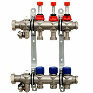 Коллекторная группа НГ 1" с вентилями и расходомерами на 7 контуров 3/4" EK, нержавеющая сталь ELSEN