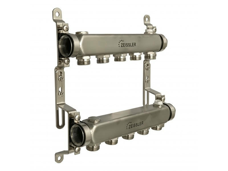 Коллекторная группа без запорных клапанов 1" на 5 выходов 3/4" ЕК ZEISSLER