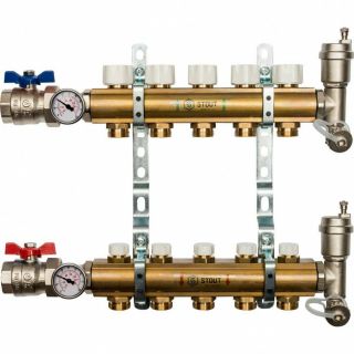Коллекторная группа из латуни без расходомеров на 5 выходов STOUT