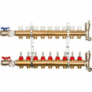 Распределительный коллектор из латуни с расходомерами на 9 выходов STOUT SMB 0473 000009 позволяет существенно повысить удобство эксплуатации отопительной системы, а также ее ремонтопригодность. Изделие изготовлено в Италии и отвечает всем стандартам качества. Наличие расходомеров позволяет настроить оптимальный расход горячей воды для всех контуров системы отопления и теплого пола. Устройство подходит для эксплуатации в квартирах и частных домах.