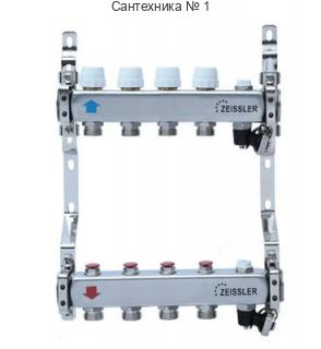 Коллекторная группа из нержавеющей стали без расходомеров 1" на 4 выхода 3/4" ZEISSLER