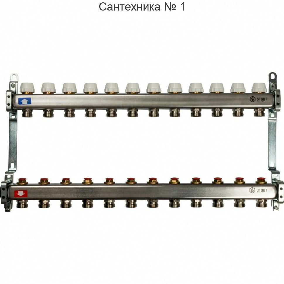 Коллекторная группа из нержавеющей стали без расходомеров на 12 выходов STOUT
