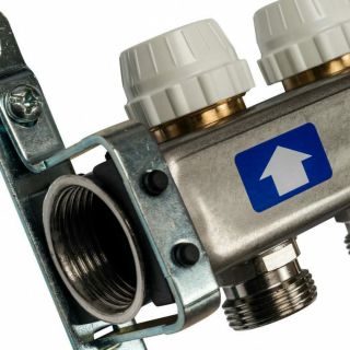 Коллектор STOUT 1" x 3/4" на 4 контура для радиаторного отопления из нержавеющей стали SMS-0922-000004 предназначен для распределения теплоносителя с температурой до 90°С и давлением до 10 бар. Распределительные блоки STOUT серии SMS 0922 представляют собой подающие коллекторы с запорно-балансировочными клапанами и обратные коллекторы с терморегуляторами с регулирующим колпачком, смонтированные на цельнометаллических кронштейнах с межосевым расстоянием 211 мм и оснащённые штуцерами "под евроконус". Коллекторы изготовлены из нержавеющей стали AISI 304L.