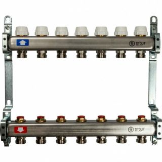 Коллекторная группа из нержавеющей стали без расходомеров на 7 выходов STOUT