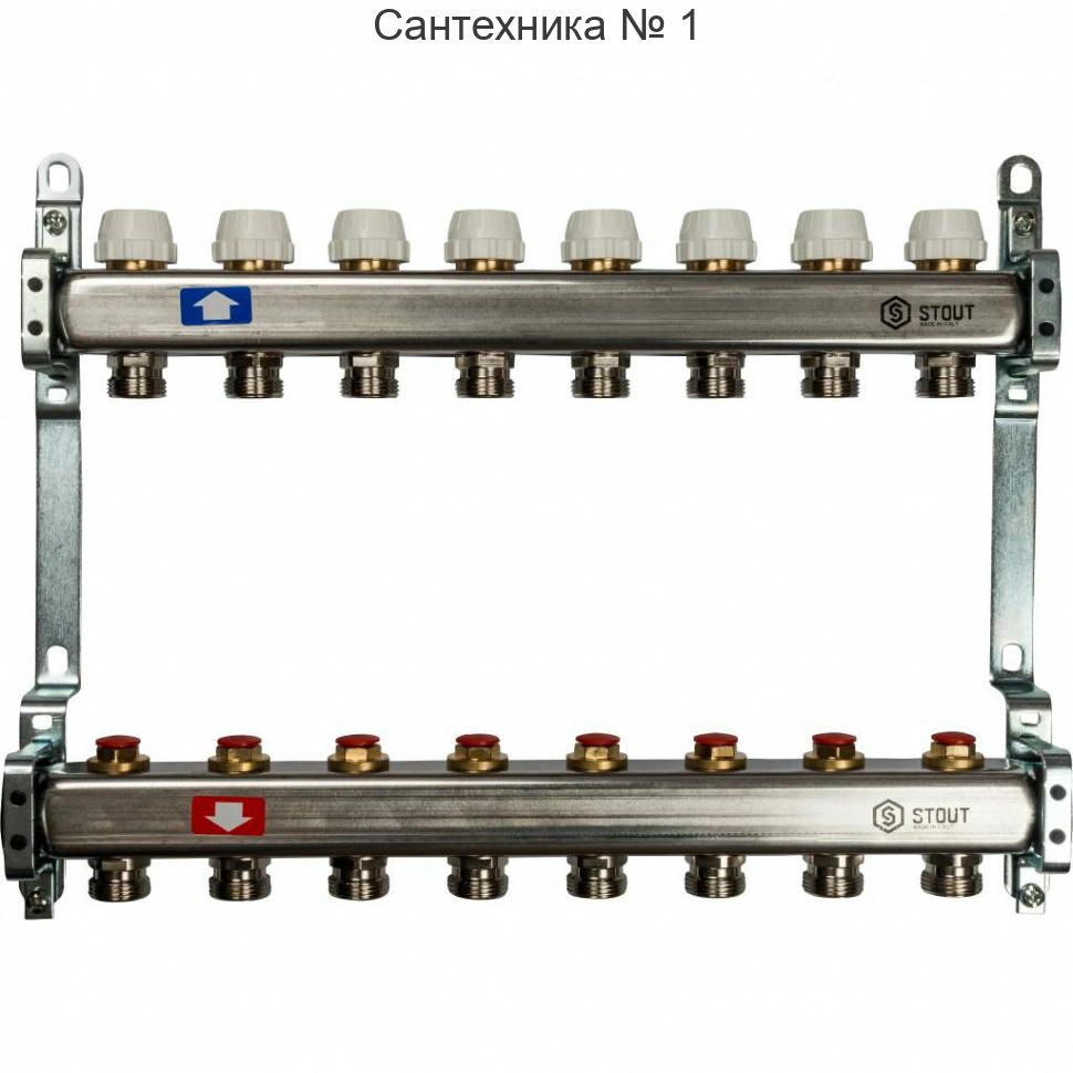 Коллекторная группа из нержавеющей стали без расходомеров на 8 выходов STOUT