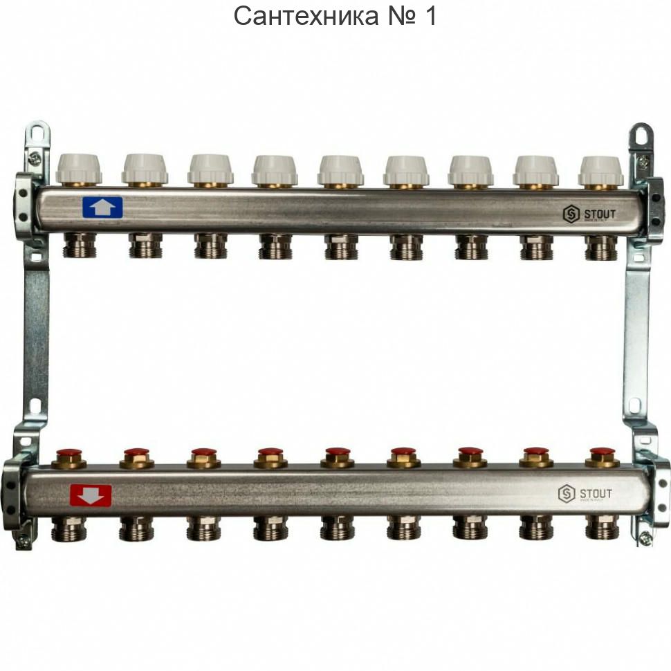 Коллектор STOUT 1" x 3/4" на 9 контуров для радиаторного отопления из нержавеющей стали SMS-0922-000009 предназначен для распределения теплоносителя с температурой до 90°С и давлением до 10 бар. Распределительные блоки STOUT серии SMS 0922 представляют собой подающие коллекторы с запорно-балансировочными клапанами и обратные коллекторы с терморегуляторами с регулирующим колпачком, смонтированные на цельнометаллических кронштейнах с межосевым расстоянием 211 мм и оснащённые штуцерами "под евроконус". Коллекторы изготовлены из нержавеющей стали AISI 304L.