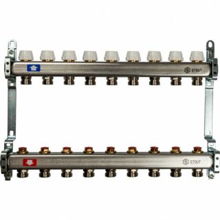Коллекторная группа из нержавеющей стали без расходомеров на 9 выходов STOUT
