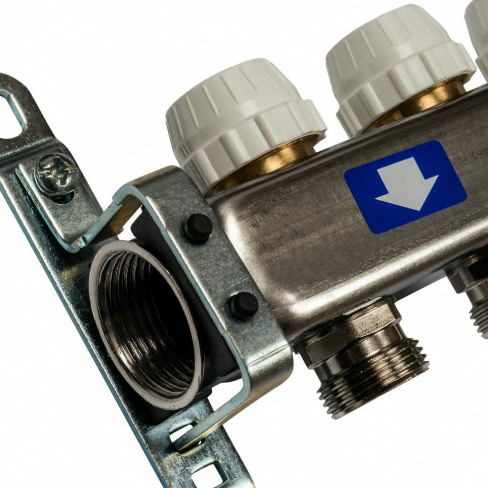Оцените товар «Коллекторная группа из нержавеющей стали без расходомеров, с клапаном выпуска воздуха и сливом на 10 выходов STOUT»