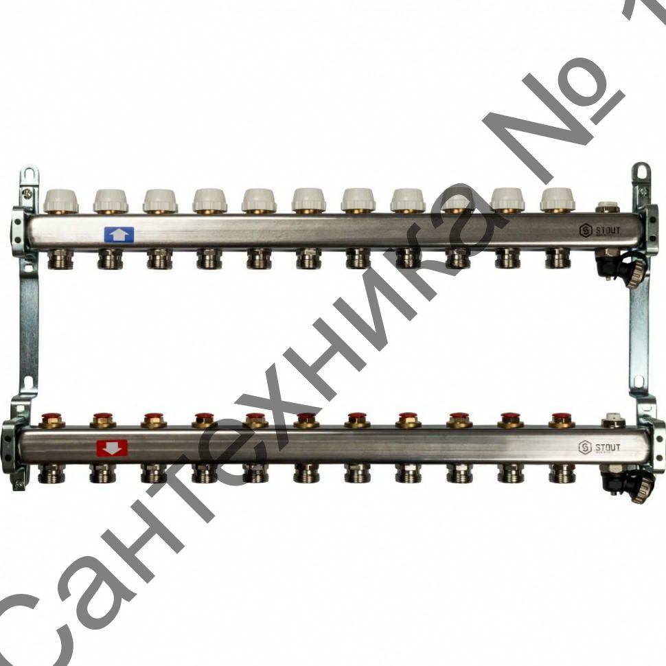 Коллектор из нержавеющей стали без расходомеров, с клапаном выпуска воздуха и сливом STOUT 11 выходов SMS-0932-000011 предназначен для подачи и регулировки теплоносителя. Каждая труба отопительной системы или теплого пола подключается к данному элементу, что дает возможно управлять каждым кольцом системы.