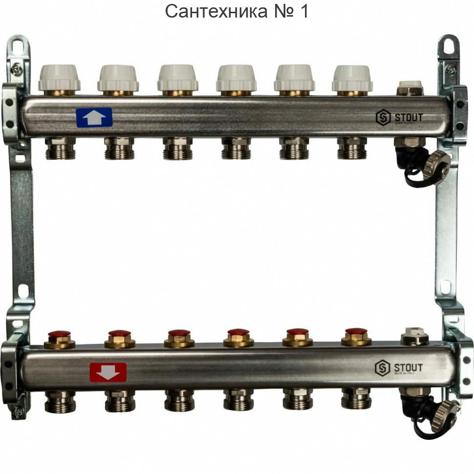 Коллектор из нержавеющей стали без расходомеров, с клапаном выпуска воздуха и сливом STOUT 6 выходов SMS-0932-000006 предназначен для подачи и регулировки теплоносителя. Каждая труба отопительной системы или теплого пола подключается к данному элементу, что дает возможно управлять каждым кольцом системы.