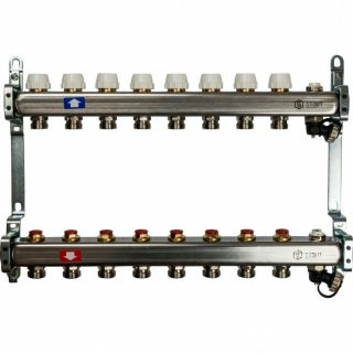 Коллектор из нержавеющей стали без расходомеров, с клапаном выпуска воздуха и сливом STOUT 8 выходов SMS-0932-000008 предназначен для подачи и регулировки теплоносителя. Каждая труба отопительной системы или теплого пола подключается к данному элементу, что дает возможно управлять каждым кольцом системы.