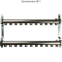 Коллекторная группа из нержавеющей стали для радиаторной разводки без расходомеров на 11 выходов STOUT