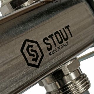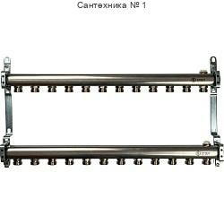 Коллекторная группа из нержавеющей стали для радиаторной разводки без расходомеров на 12 выходов STOUT